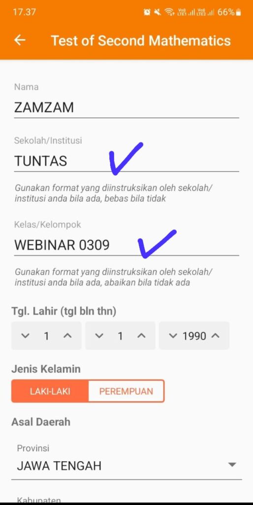 4. Lanjutkan ke mode tes utama → mode 1/2 penuh kemudian mode penuh.